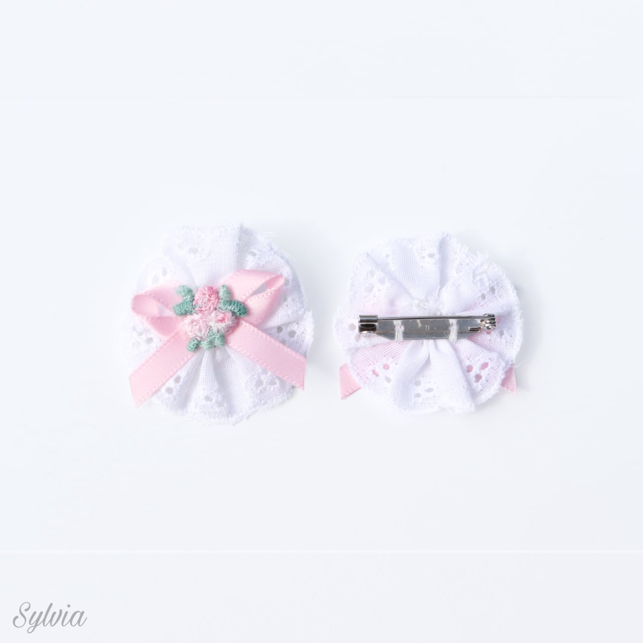 私がときめく組み合わせホワイト、ピンク、リボン、お花全部入ったかわいい刺繍ブローチです♡