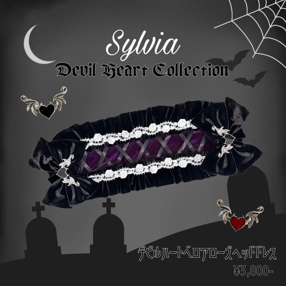 デビルハートベロアローズヘッドドレス - Purple