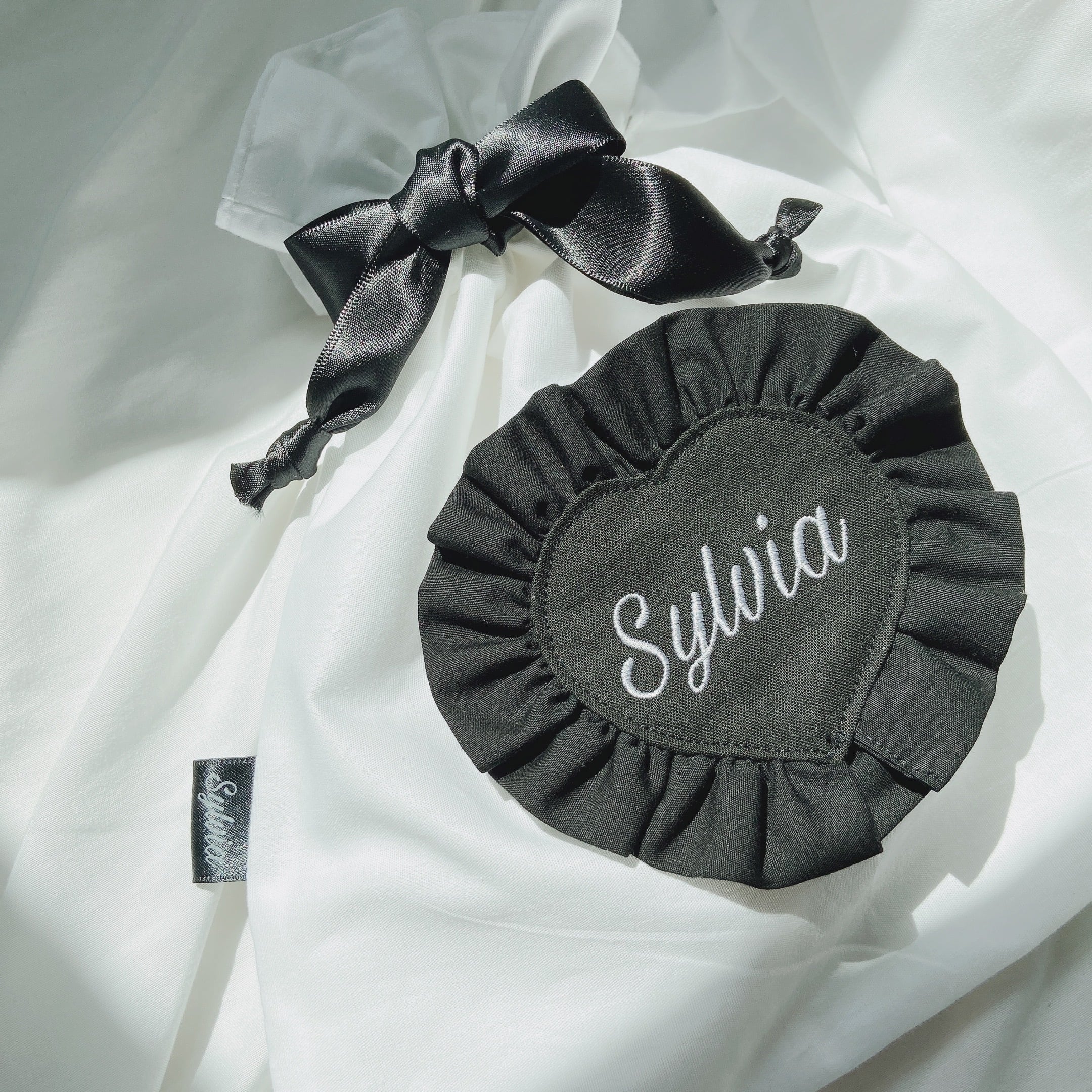 黒のハートに白文字のSylvia刺繍が映えてとっても可愛い巾着ポーチです!